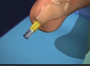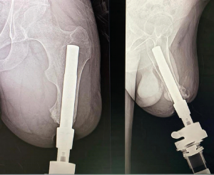 El proceso de implantación consta de dos pasos: el primer tiempo consiste en poner el implante dentro del fémur para que se integre con el hueso. Esto se produce gracias a la capacidad de éste de crecer dentro de las rugosidades del titanio que cubre el implante. El segundo tiempo consiste en poner el puente. Éste conecta el implante interno con la prótesis externa a través de la piel que debe quedar apropiadamente sellada para evitar la entrada de bacterias. Dos meses separarán el primer tiempo del segundo. A partir del segundo tiempo, cuando la herida está cicatrizada, empieza un periodo de carga progresiva para alcanzar la carga completa a las 8 semanas, aproximadamente.